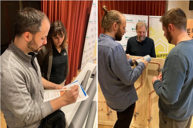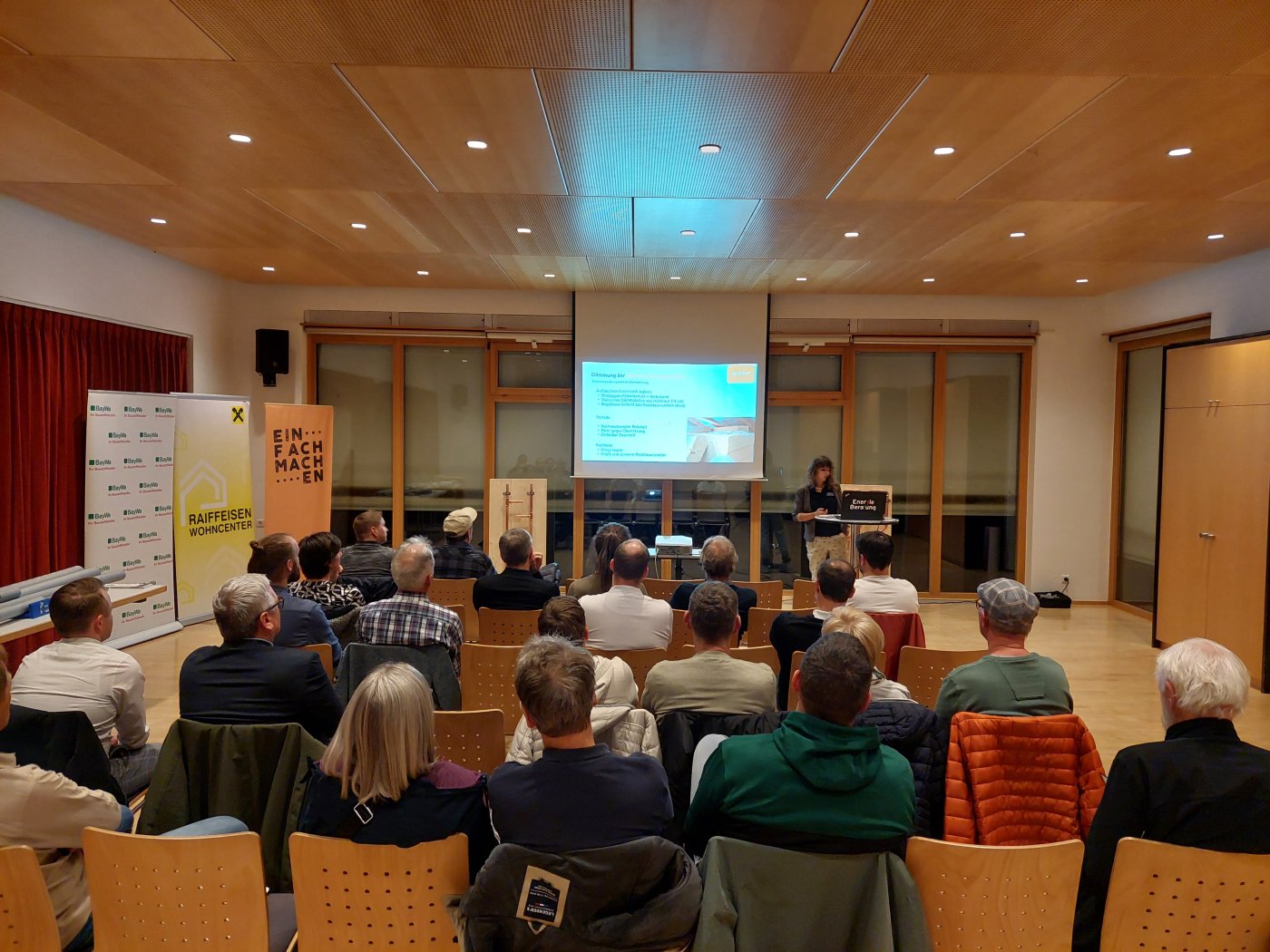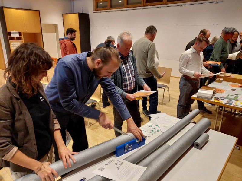 Gut 30 Personen kamen am 13. November in den Pfarrsaal nach Hörbranz, um dort zu erfahren, wie man Dachboden und Heizungsrohre am Einfachsten selber dämmt. Neben technischen Infos durch Verena Engstler vom Energieinstitut, erhielten die Teilnehmenden alle Infos zum Servicepaket über "Einfach dämmen". Ebenso hatten sie beim Kooperationspartner Baywa Baustoffe mit Otmar Berlinger und Josef Wittwer die Möglichkeit, Materialien kennenzulernen und sich zu informieren. Eifrig genutzt wurde auch die Dämmstation zum direkten Erlernen des Themas Heizungsrohre selber dämmen.